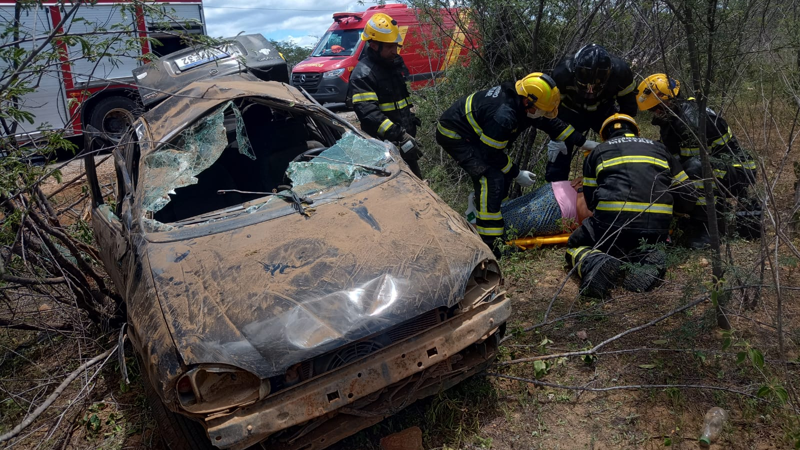Uma das vítimas já estava fora do veículo, consciente e com dor no tórax. A outra permanecia dentro do carro, também consciente, sentindo dores pelo corpo, mas não conseguia sair sozinha, apesar de não estar presa às ferragens. Os bombeiros fizeram o atendimento pré-hospitalar e retiraram a segunda pessoa com segurança.