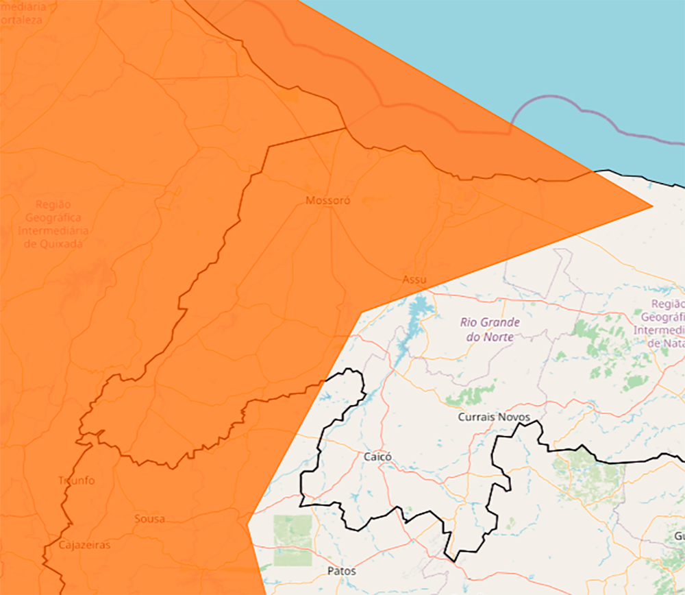 O Instituto Nacional de Meteorologia (Inmet) divulgou um alerta laranja para Mossoró e municípios da região Oeste do Rio Grande do Norte. O aviso vale das 0h do dia 4 até as 0h do dia 6 de março de 2026.