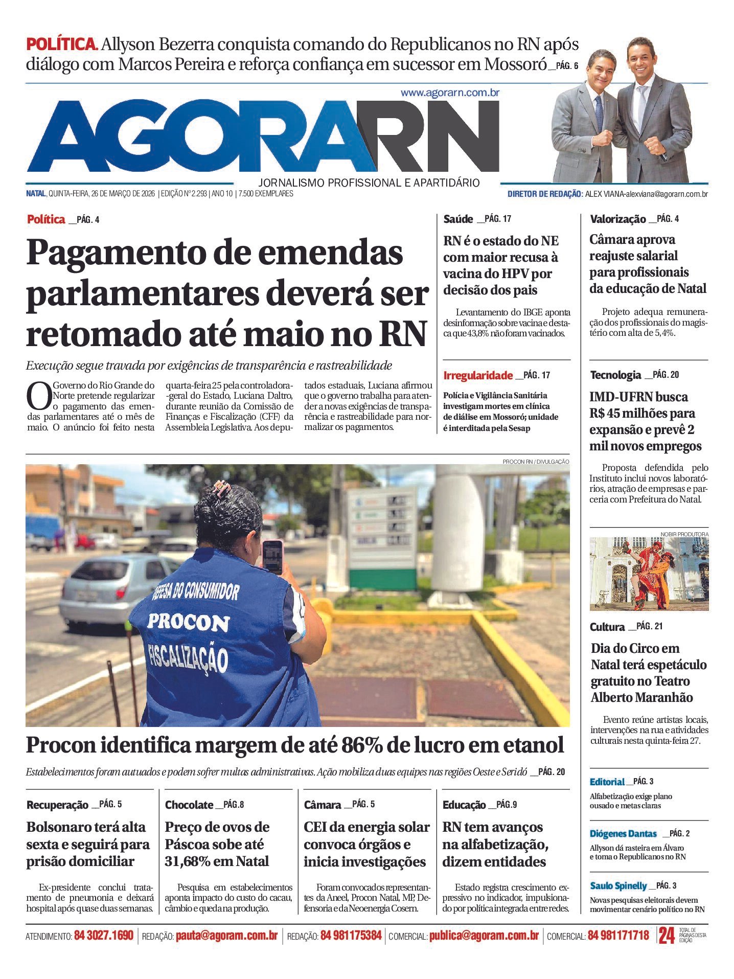 Confira a edição 2.293 em formato PDF para download. A publicação traz as principais notícias e informações atualizadas do Rio Grande do Norte.