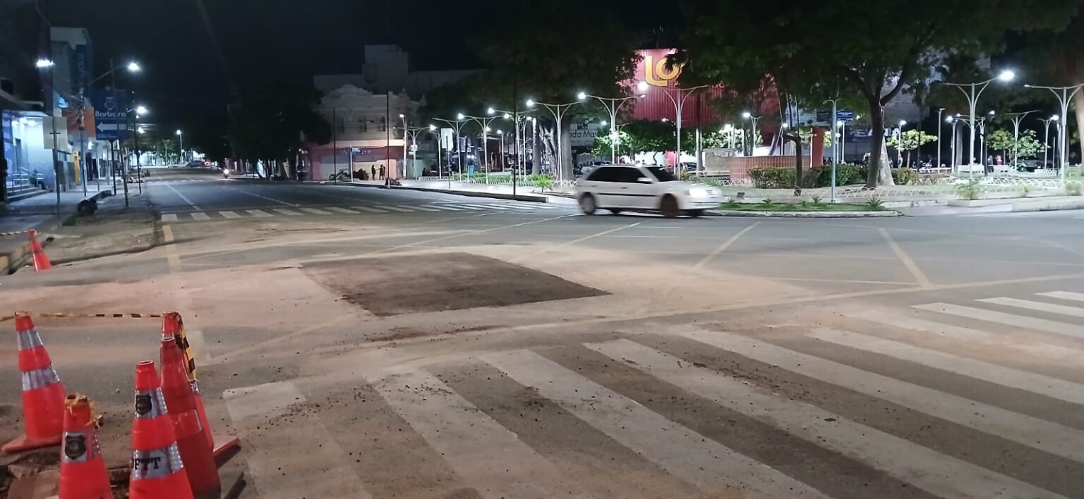 A Caern finalizou a drenagem de águas pluviais no cruzamento das ruas Coronel Gurgel e Alfredo Fernandes, no Centro de Mossoró. O local estava parcialmente interditado desde o começo da semana para escavação e construção de uma nova laje.