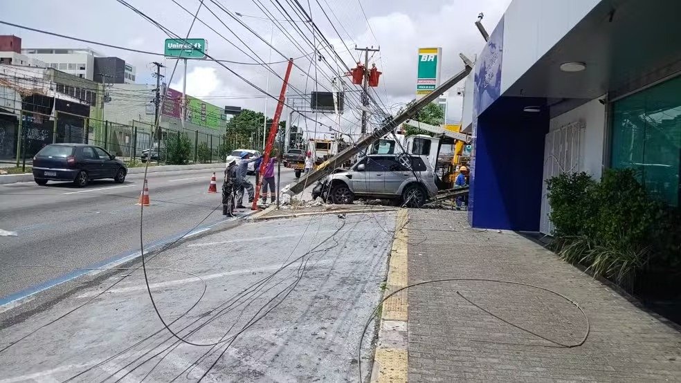 Com o impacto, um dos postes caiu sobre o carro e o outro tombou na pista, espalhando fios de energia, telefonia e internet pela avenida. O motorista foi socorrido pelo Samu e levado ao Hospital Monsenhor Walfredo Gurgel, sem ferimentos graves. A faixa exclusiva para ônibus no sentido Zona Sul precisou ser interditada, causando lentidão no trânsito da região.