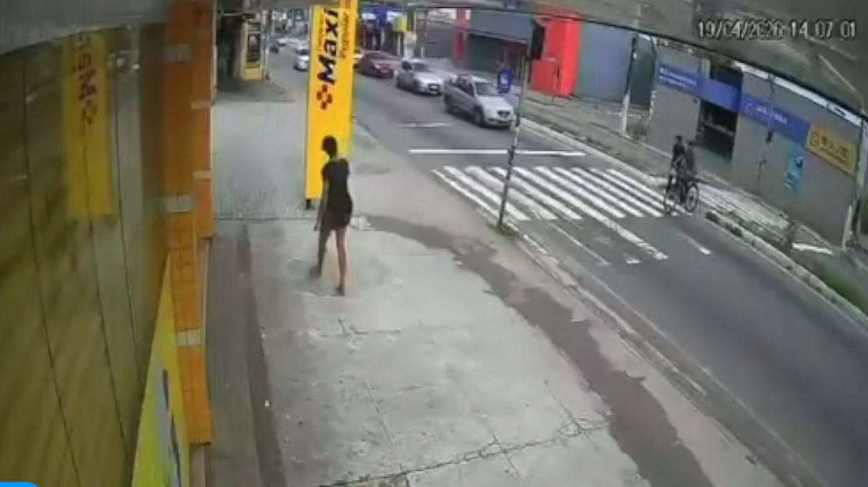As imagens mostram um pedestre aguardando o sinal para atravessar a faixa quando o ciclista passa pela via e é atingido pela moto. Apesar do impacto, a vítima não sofreu ferimentos fatais. A Avenida Tomaz Landim é uma via movimentada, com intenso fluxo de veículos na região.