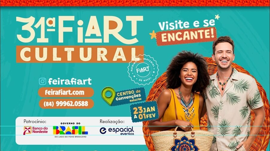 A 31ª Feira Internacional de Artesanato (FIART) começa nesta sexta-feira (23) no Centro de Convenções de Natal e segue até 1º de fevereiro. Com mais de 1.300 artesãos e 280 estandes espalhados em 7.500 m², o evento reúne trabalhos do Rio Grande do Norte, de várias regiões do Brasil e também de países como Grécia, Senegal, Peru, Equador, Colômbia e Turquia.