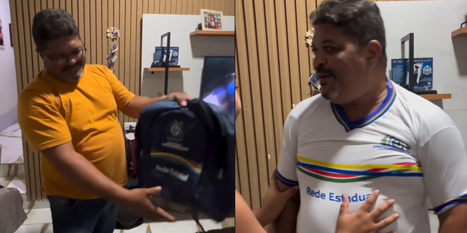 Um homem de 48 anos emocionou a internet ao mostrar sua reação ao receber um kit de material escolar. As imagens, registradas pela filha dele, mostram o momento em que ele abre a caixa enviada pela Rede Estadual de Pernambuco e descobre itens como lápis de cor, tesoura, borracha e apontador.