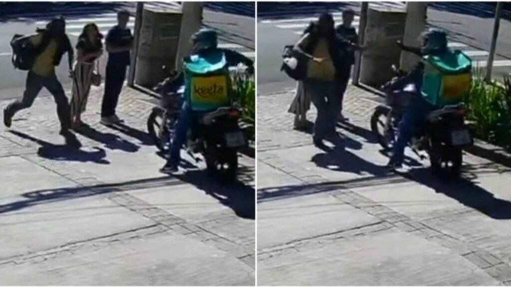 Segundo a Polícia Militar, a vítima caminhava quando viu um homem numa moto, disfarçado de entregador, abordando um casal para roubar celulares e alianças. Ao tentar ajudar, o pedestre levou um tiro na cabeça e caiu no chão. O suspeito fugiu rapidamente do local.