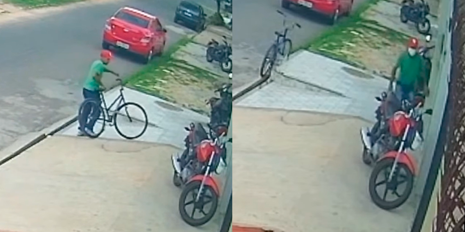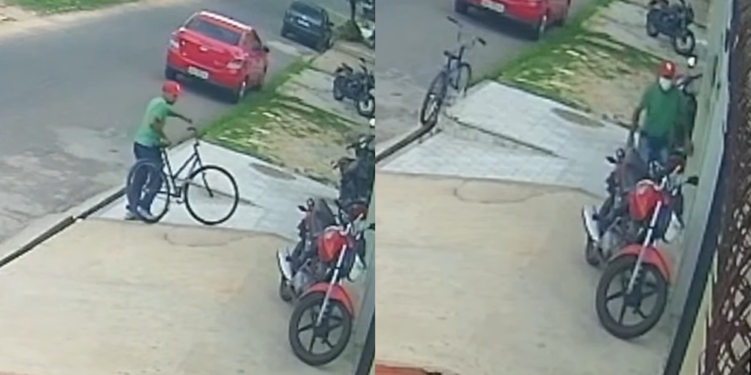 Nas imagens, o suspeito chega pedalando, observa o movimento da rua e espera até que a área fique mais tranquila. Depois, ele entra na residência, permanece por cerca de um minuto e sai levando o aparelho, fugindo novamente de bicicleta.