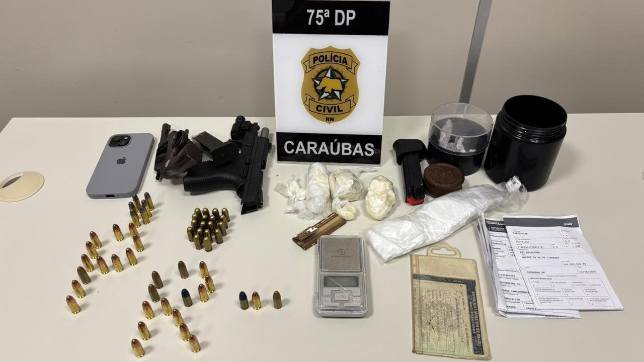 A Polícia Civil cumpriu um mandado de busca em uma casa em Caraúbas na última terça-feira (24) e encontrou armas carregadas, munições variadas e uma grande quantidade de drogas pronta para venda.