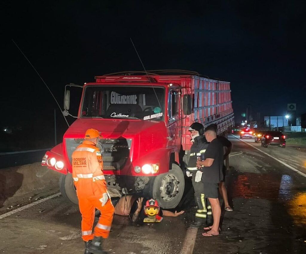 Na madrugada deste sábado (28), um motorista sofreu um acidente em Mossoró ao perder o controle do caminhão e rodar na pista. Ele foi arremessado para fora do veículo e acabou preso embaixo da estrutura do caminhão.