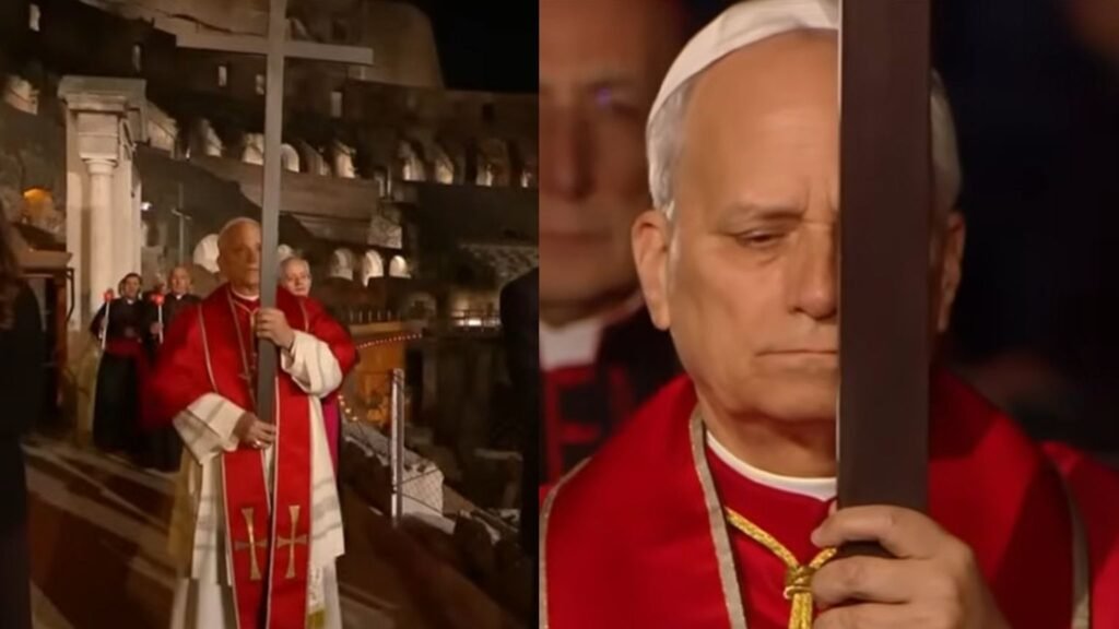 Durante a celebração da Sexta-feira Santa no Coliseu, em Roma, o Papa Leão XIV surpreendeu ao carregar uma cruz de madeira durante todo o trajeto da Via Crucis, que relembra os momentos finais da vida de Jesus Cristo. Esse gesto não era visto há décadas e marca a primeira vez que ele conduz as cerimônias da Semana Santa como pontífice.