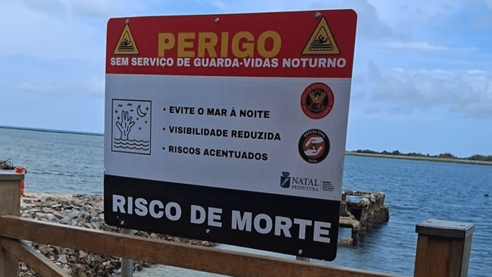 Começou a instalação de placas na Praia da Redinha, em Natal, para avisar sobre os riscos do banho durante a noite. A prática, que virou tendência nas últimas semanas, foi desaconselhada pelo Corpo de Bombeiros devido à alta probabilidade de acidentes graves.