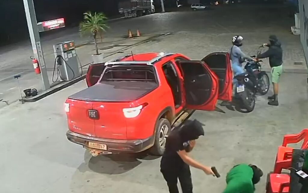 Um posto de combustíveis em Angicos, no Rio Grande do Norte, foi assaltado na noite de sábado (4). Cinco criminosos armados chegaram em um carro vermelho, anunciaram o assalto e roubaram cerca de R$ 2 mil, oito celulares e o telefone funcional do estabelecimento. Um vídeo mostra o momento da abordagem às vítimas.
