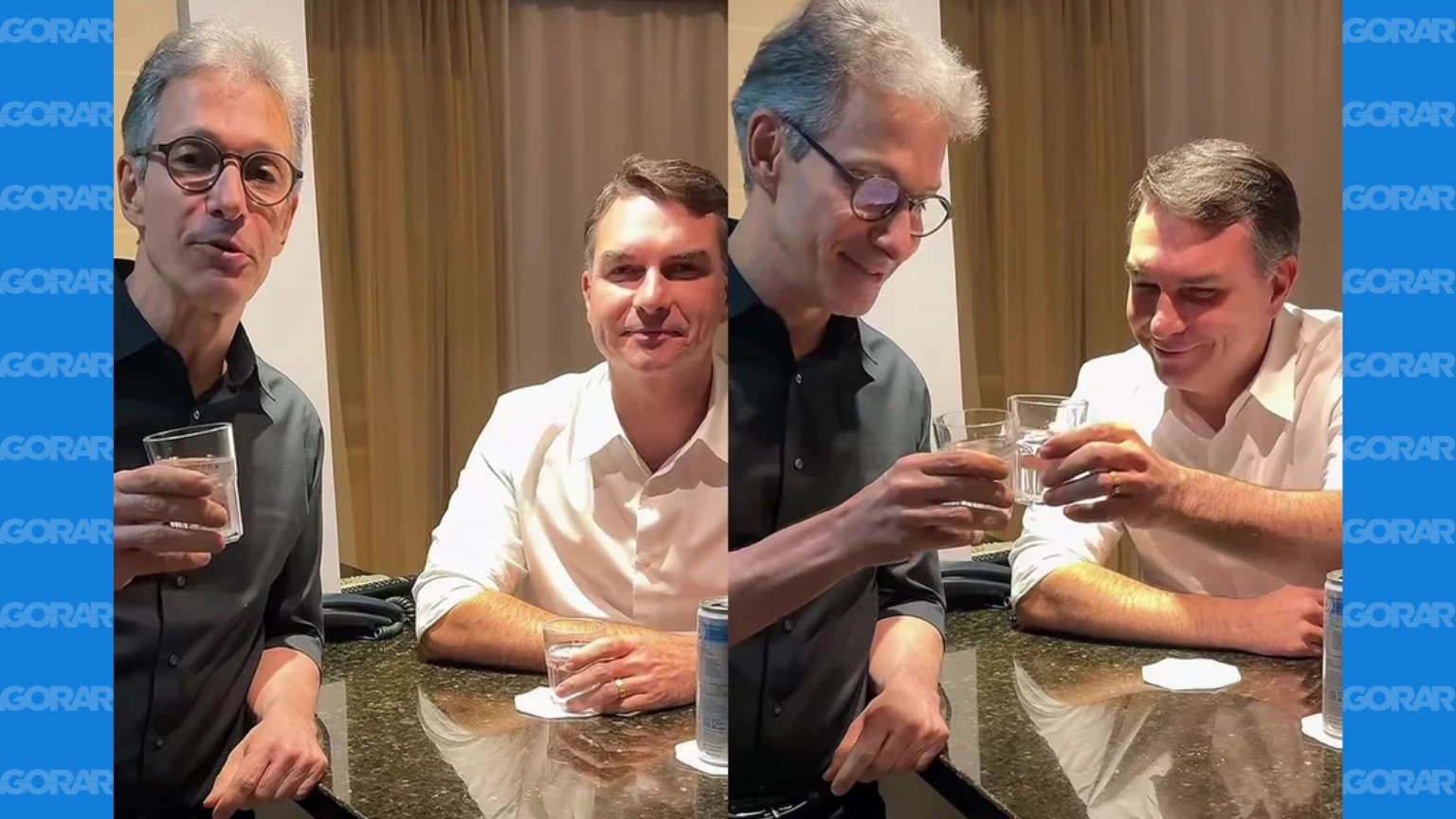O ex-governador de Minas Gerais, Romeu Zema (Novo), e o senador Flávio Bolsonaro (PL-RJ) apareceram juntos em vídeo nas redes sociais neste sábado (11), em meio à corrida presidencial. Na gravação, os dois trocam brincadeiras, com Zema sugerindo Flávio como seu vice, e o senador respondendo com um “Será?”, enquanto brindam descontraídos.